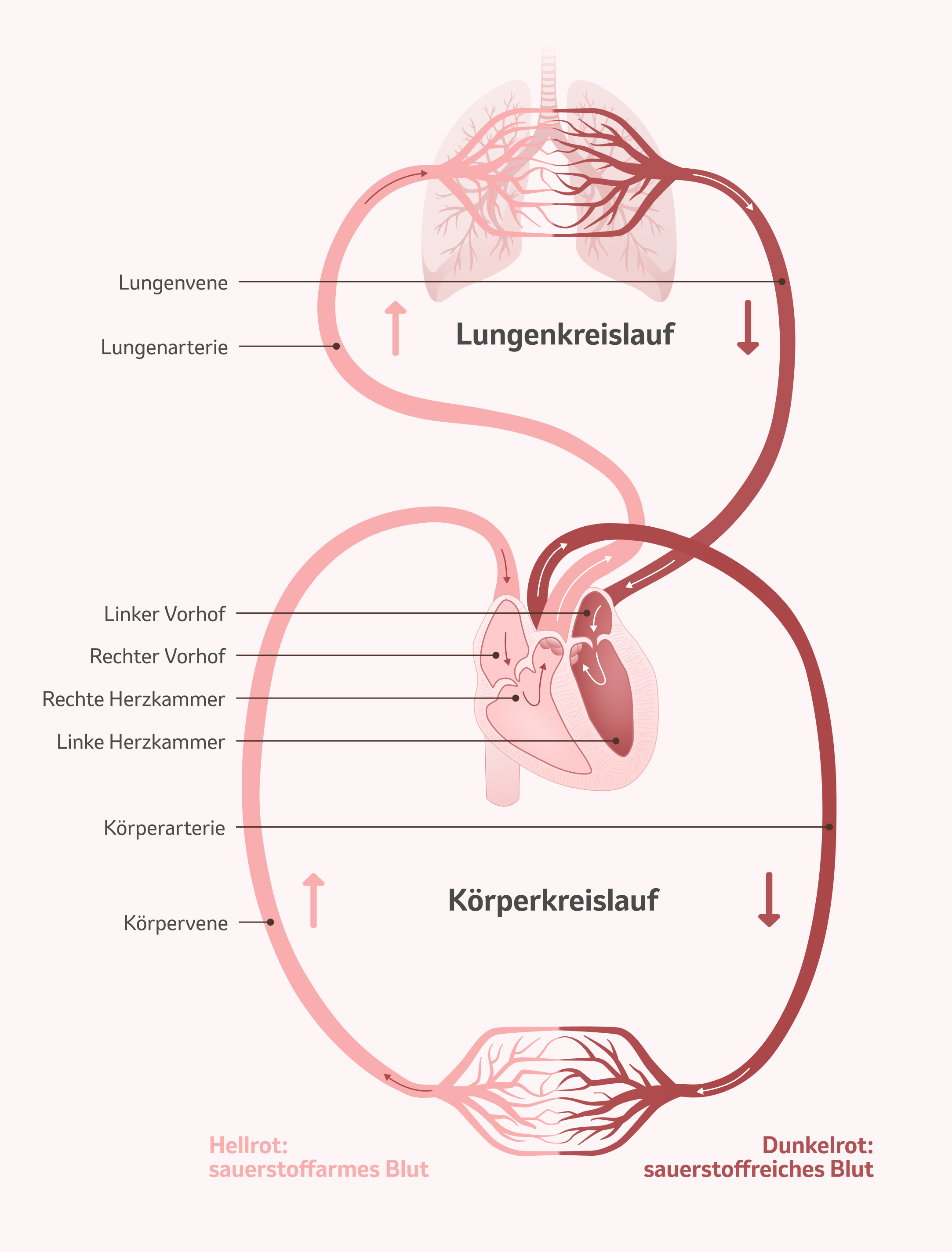 Der menschliche Blutkreislauf umfasst zwei Kreisläufe: